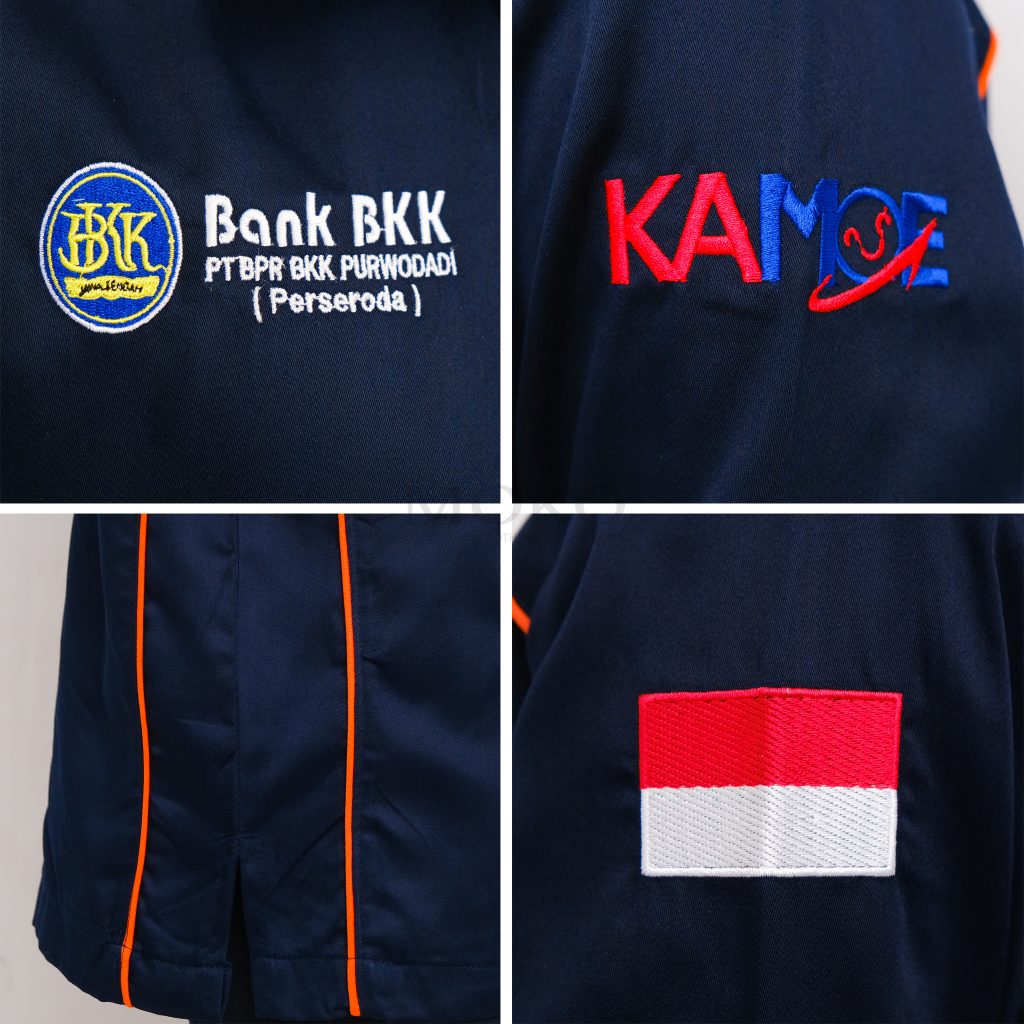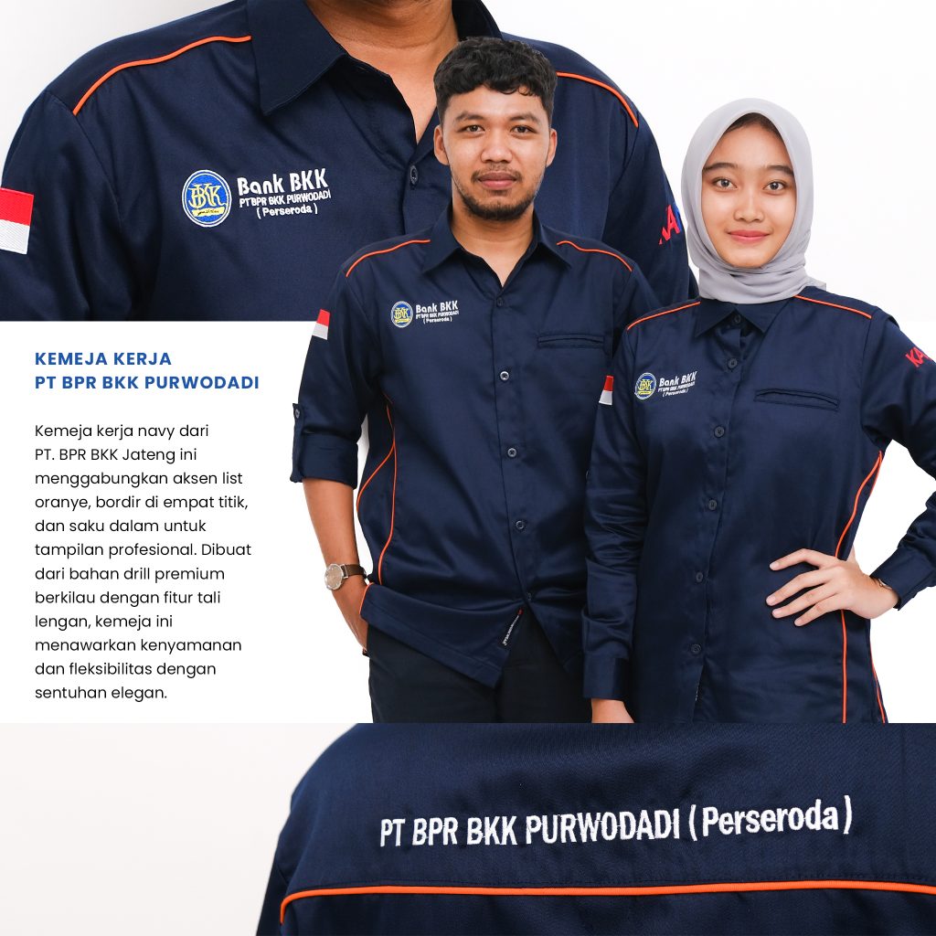 Proyek kemeja kerja warna navy untuk PT BPR BKK Purwodadi membuktikan bahwa seragam kantor bisa tampil elegan, dinamis, dan tetap fungsional. Desain yang rapi, bahan berkualitas tinggi, serta sentuhan identitas visual menjadikan kemeja ini ideal untuk digunakan dalam kegiatan formal maupun pelayanan harian.